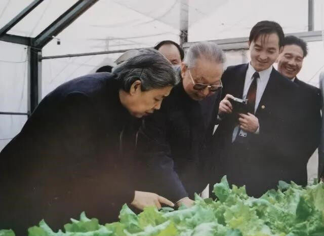 华国锋历来重视农业的发展,曾大力发展农业机械化和种植技术的创新应用。图为华国锋参观深圳农科中心的无土栽培技术