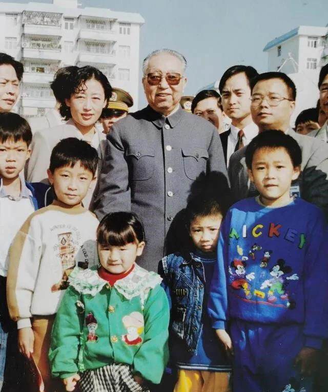 华国锋参观深圳居民小区,了解居民的居住条件,与小区居民合影留念