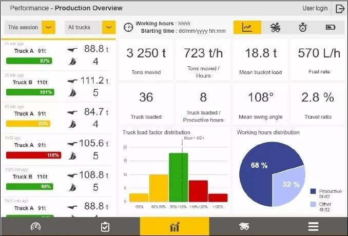 利勃海尔R 9600装备了利勃海尔作业辅助系统。这些先进的车载应用系统,通过对实时数据的采集分析,可以给操作手提供最佳操作建议,帮助操作手提高作业效率。配套的矿用自卸卡车装载辅助系统,同样可以帮助操作手通过优化操作获得最大的生产效率。该系统测量精度为99%,可测量瞬时有效载荷,并向操作手提供实时信息。卡车装载辅助系统可以优化装车次数,来实现卡车目标载荷。