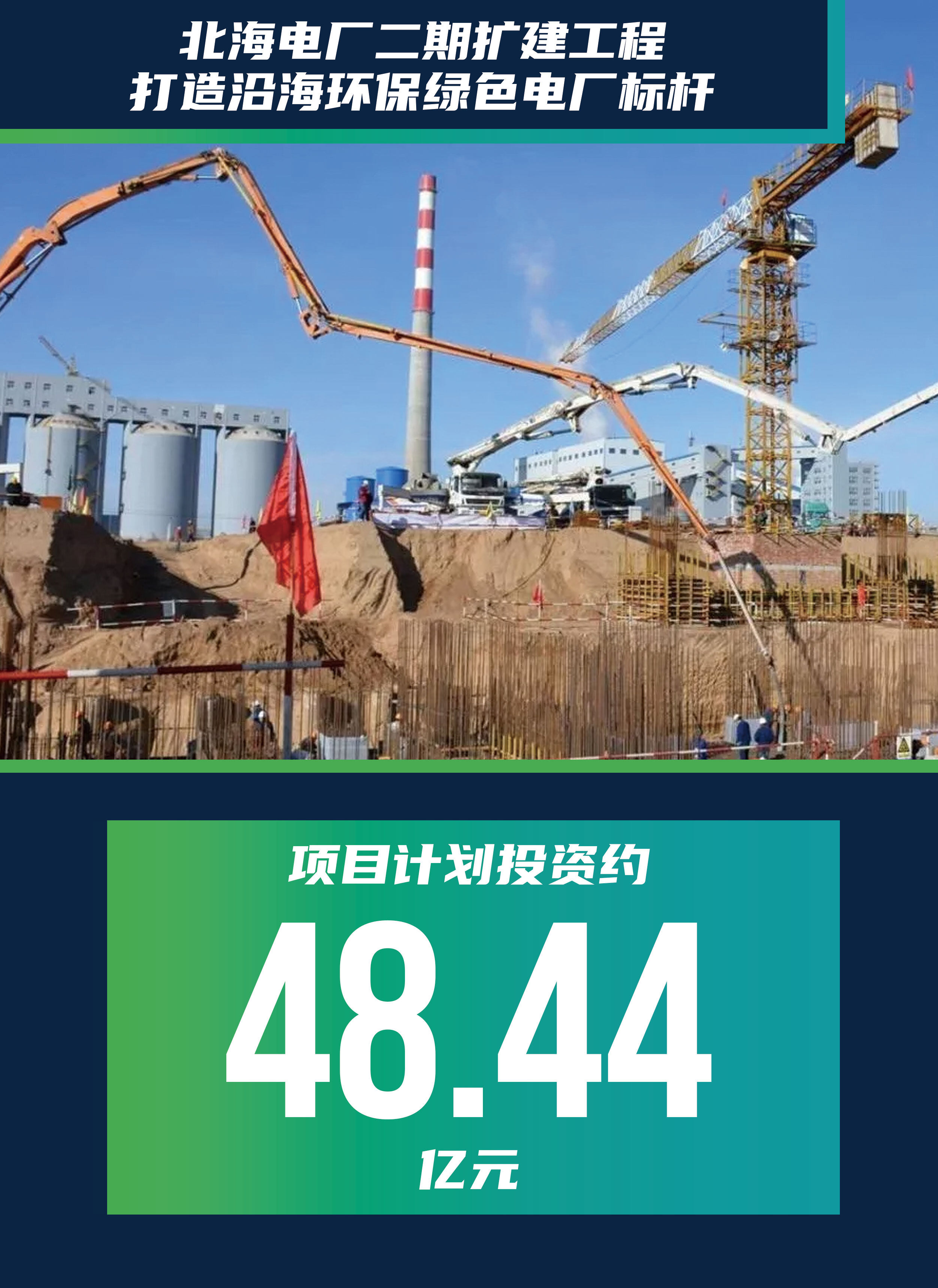 该项目规划在广西北海市铁山港区,将建设2台660兆瓦超超临界抽凝式热电联产机组,同步建设脱硫、脱硝、除尘装置等环保设施,实现烟气超低排放的环保目标,打造广西沿海地区环保绿色电厂的标杆。项目计划投资约48.44亿元,预计2023年底实现首台并网发电。项目建成投产后预计年发电量达69.46亿千瓦时,年节约标煤 5.9 万吨(相当于减少二氧化碳排放15万吨),年节约燃料成本7000万元,年供热量1029万吉焦,可创造地区税收7119万元,增加近400个就业岗位。