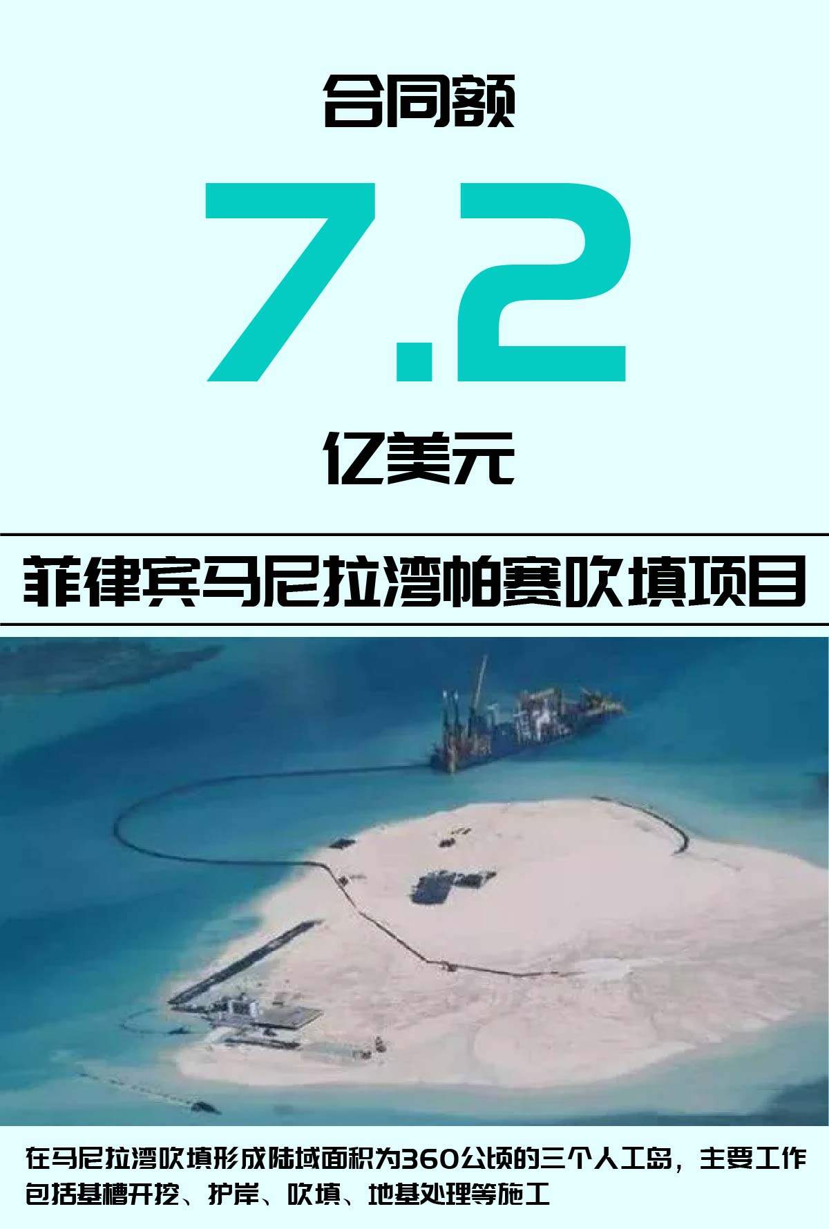 2019年12月6日,中国港湾收到菲律宾马尼拉湾帕赛吹填项目中标函,项目为设计、施工合同,合同额7.2亿美元。于2020年11月11日开工。