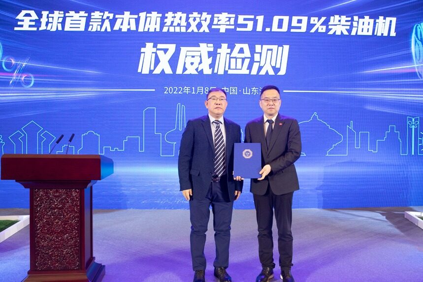2022年1月8日,潍柴动力全球首款本体热效率51.09%柴油机发布。继2020年9月16日,发布全球首款本体热效率突破50.23%的柴油机之后,潍柴又发出一记重磅消息,这是传统动力热效率的又一次重大革命,也为“国七”排放标准实施提供强大的技术准备。