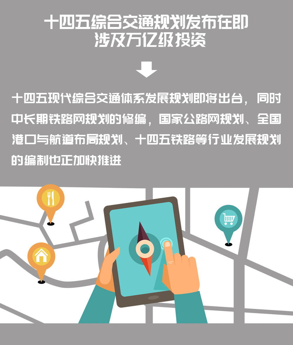 交通运输是国民经的中流砥柱和重要的服务性行业,是可持续发展的重要支撑,也直接影响着人民群众生产生活水平与幸福感、获得感。据报道,“十四五”现代综合交通体系发展规划即将出台,同时,中长期铁路网规划的修编,国家公路网规划、全国港口与航道布局规划、“十四五”铁路等行业发展规划的编制也正加快推进。