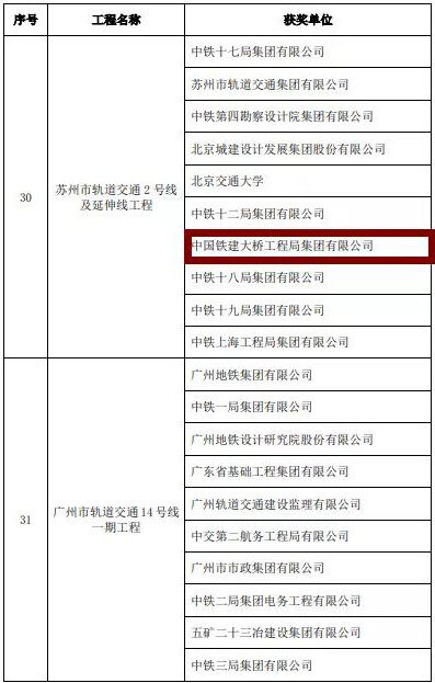 On January 12, 2022, the Chinese Society of Civil Engineering officially released the list of winners of the 19th China Civil Engineering Zhan Tianyou Award. The Suzhou Metro Line 2 and its extension project, which was participated by the China Railway Construction Bridge Bureau, was on the list and won the "Zhan Tianyou Award", which is also the 17th Zhan Tianyou Award won by the China Railway Construction Bridge Bureau.