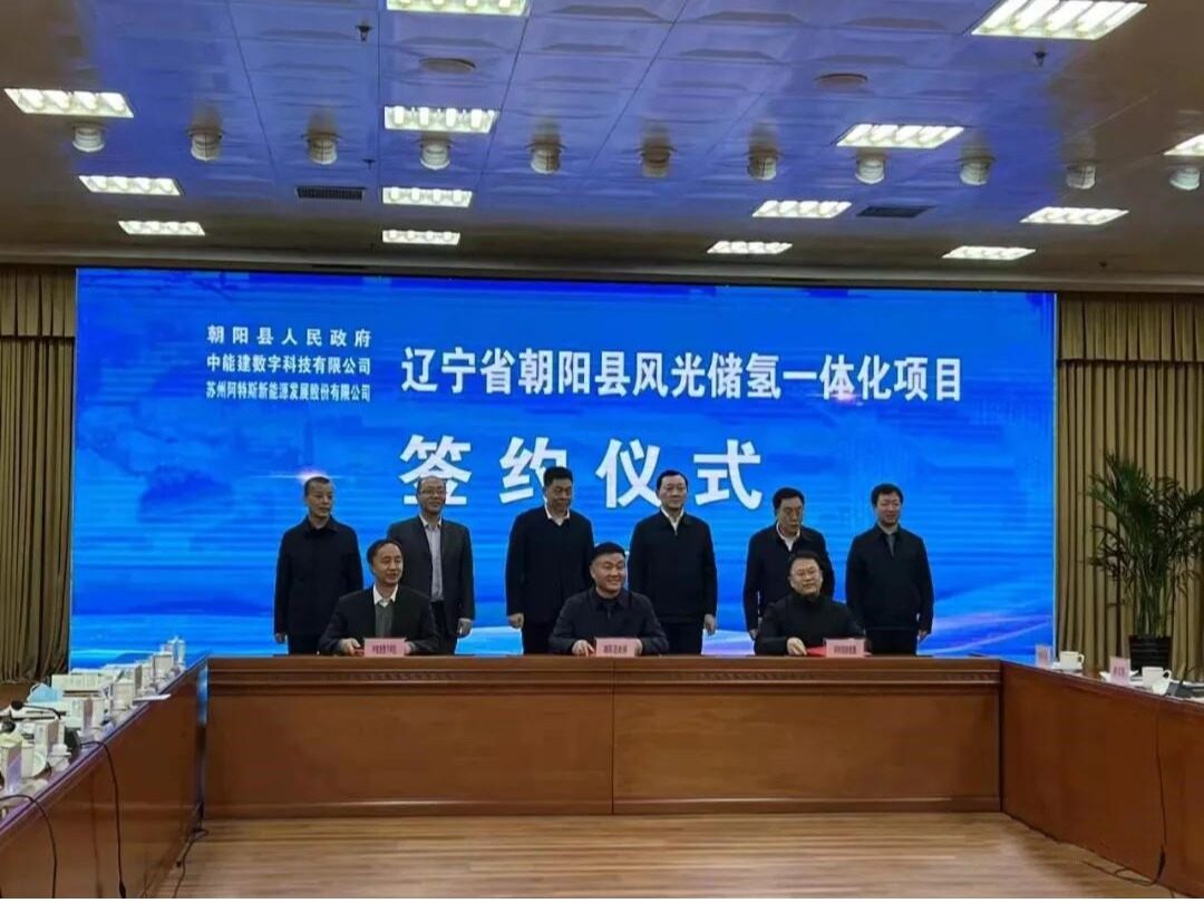 近日,朝阳县人民政府和中能建数字科技有限公司、苏州阿特斯新能源发展股份有限公司就辽宁省朝阳县风光储氢一体化项目进行签约。