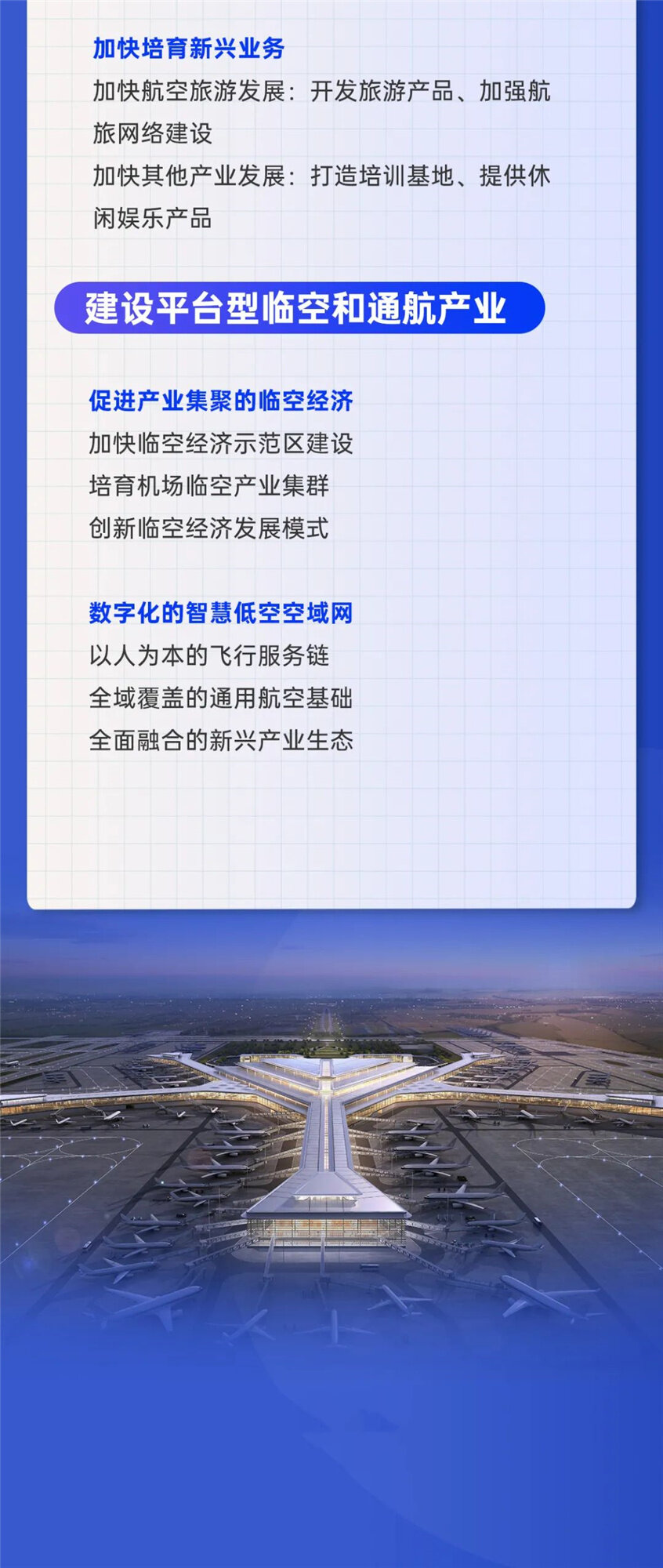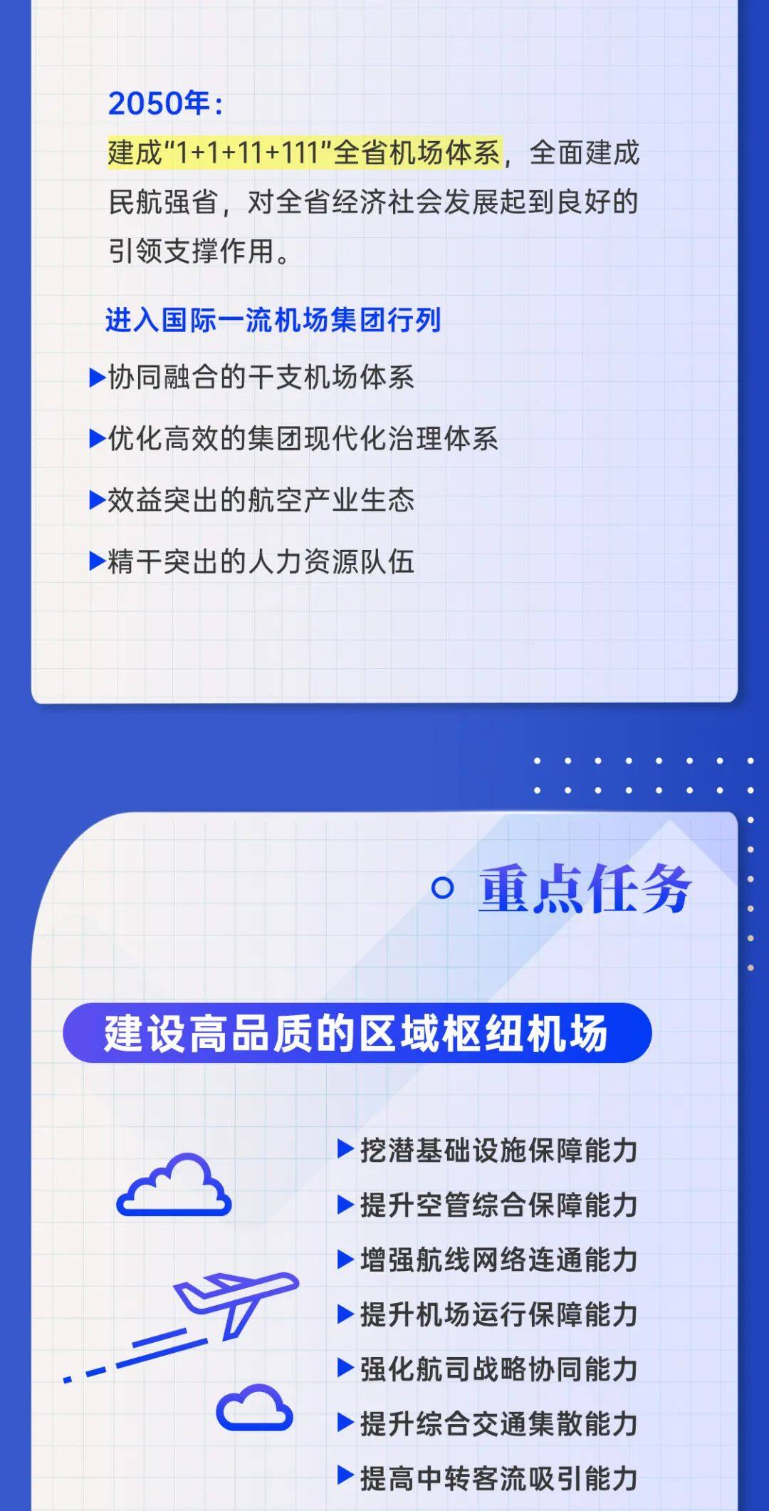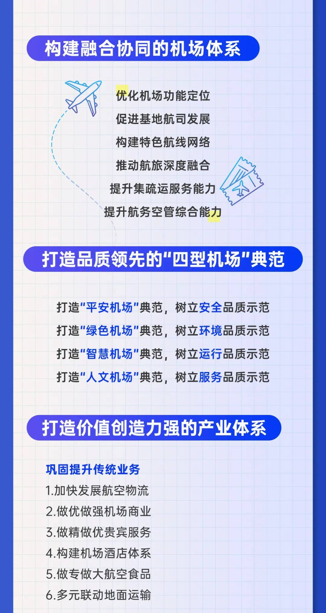 规划明确提出,在未来五年内,全面开启建设国内一流机场集团,建设高品质的区域枢纽机场、构建融合协同的机场体系、打造品质领先的“四型机场”典范、打造价值创造力强的产业体系、建设平台型临空和通航产业等五个方面的重点任务。换句话说,以后旅客们出行,将能享受到更优质的飞行体验。