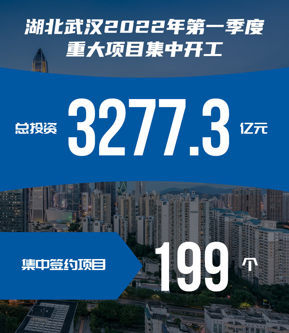2022年1月18日上午,湖北武汉市一季度199个重大项目集中开工,总投资3277.3亿元,涵盖科技创新、生物医药、智能制造等多个领域,其中先进制造业项目68个,现代服务业项目50个,100亿元以上项目7个,50亿元—100亿元项目9个。集中开工活动以视频连线方式进行,各区(开发区)设分会场。
