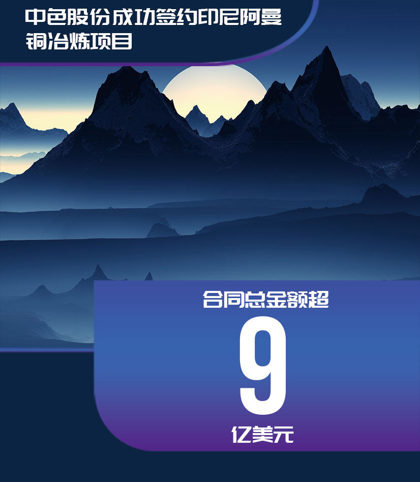 近日,中国有色集团出资企业中国有色金属建设股份有限公司与印尼矿业巨头阿曼矿业公司陆续签署了90万吨铜冶炼厂项目合同,合同总金额超9亿美元,由中色股份及其印尼子公司联合签署,为业主提供设计、采购、施工、调试交付一揽子工程,业主以现汇方式支付。该项目的签署标志着中色股份在一带一路沿线国家的市场开拓取得又一项重大突破。
