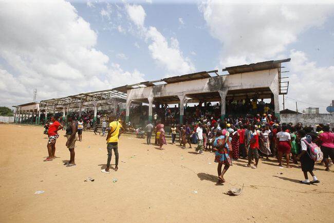 On January 20, 2022, Liberia time, people gather at a hospital on the outskirts of Monrovia, the capital of Liberia, where victims of the stampede are treated. Editor/He Yuting