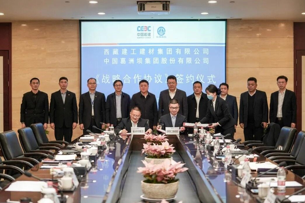 Gezhouba Group and Tibet Construction Engineering Building Materials Group have a high degree of compatibility in their business fields, and there is a broad space for cooperation. On January 23, 2022, Energy China Gezhouba Group and Tibet Construction Engineering Building Materials Group signed a strategic cooperation agreement in Han. The two sides agreed to deepen strategic cooperation in the fields of infrastructure construction, cement, civil explosion, area development, new energy, ecological environment management, and plateau characteristic industries. Song Ling, Secretary of the Party Committee and Chairman of the Group Co., Ltd., and Duoji Luobu, Secretary of the Party Committee and Chairman of Tibet Construction Engineering Building Materials Group, witnessed the signing and had a discussion.