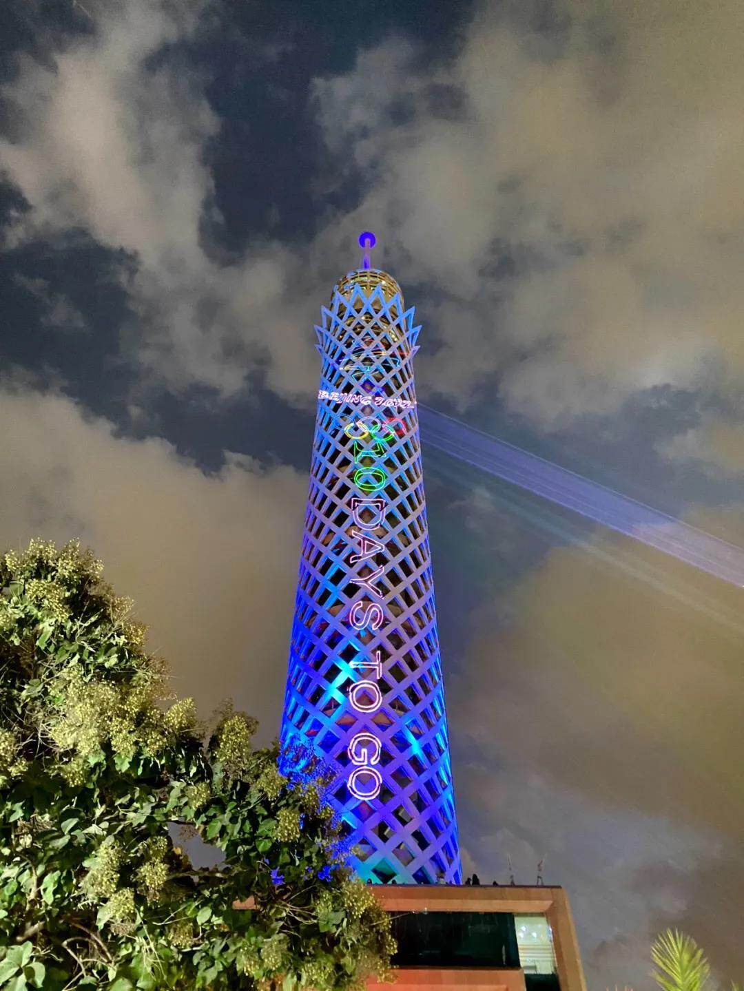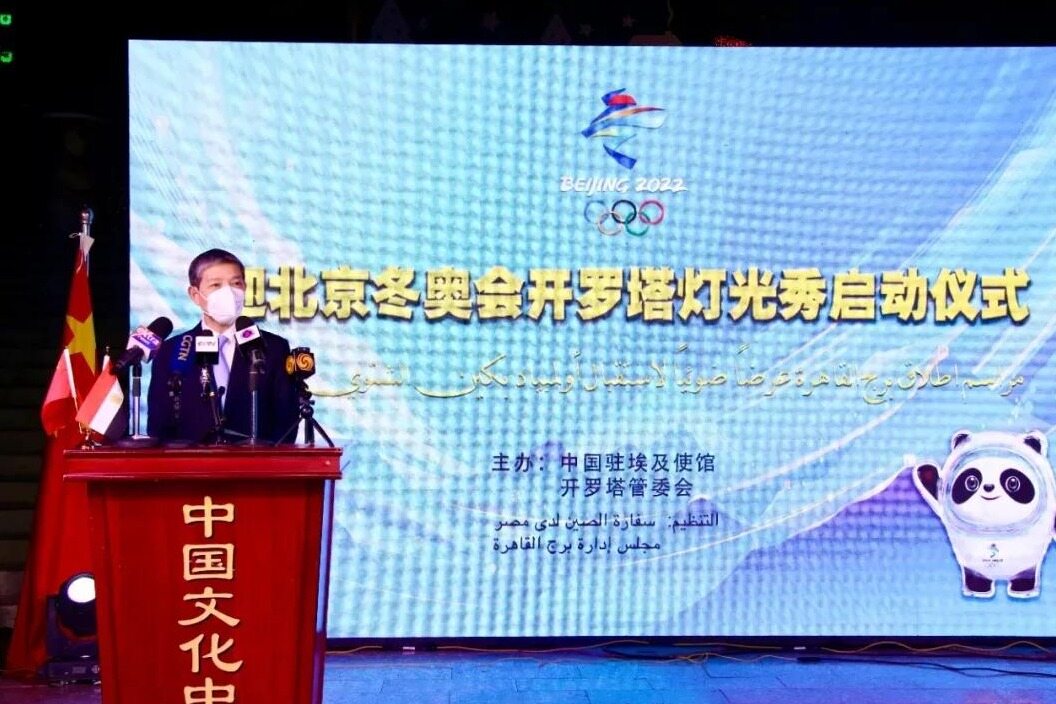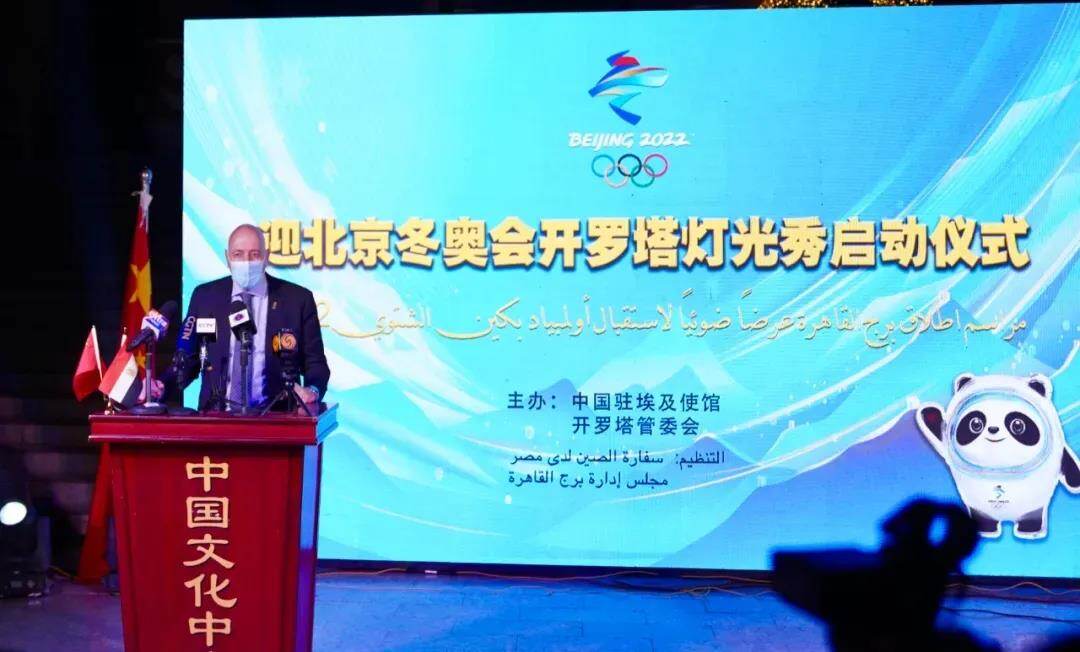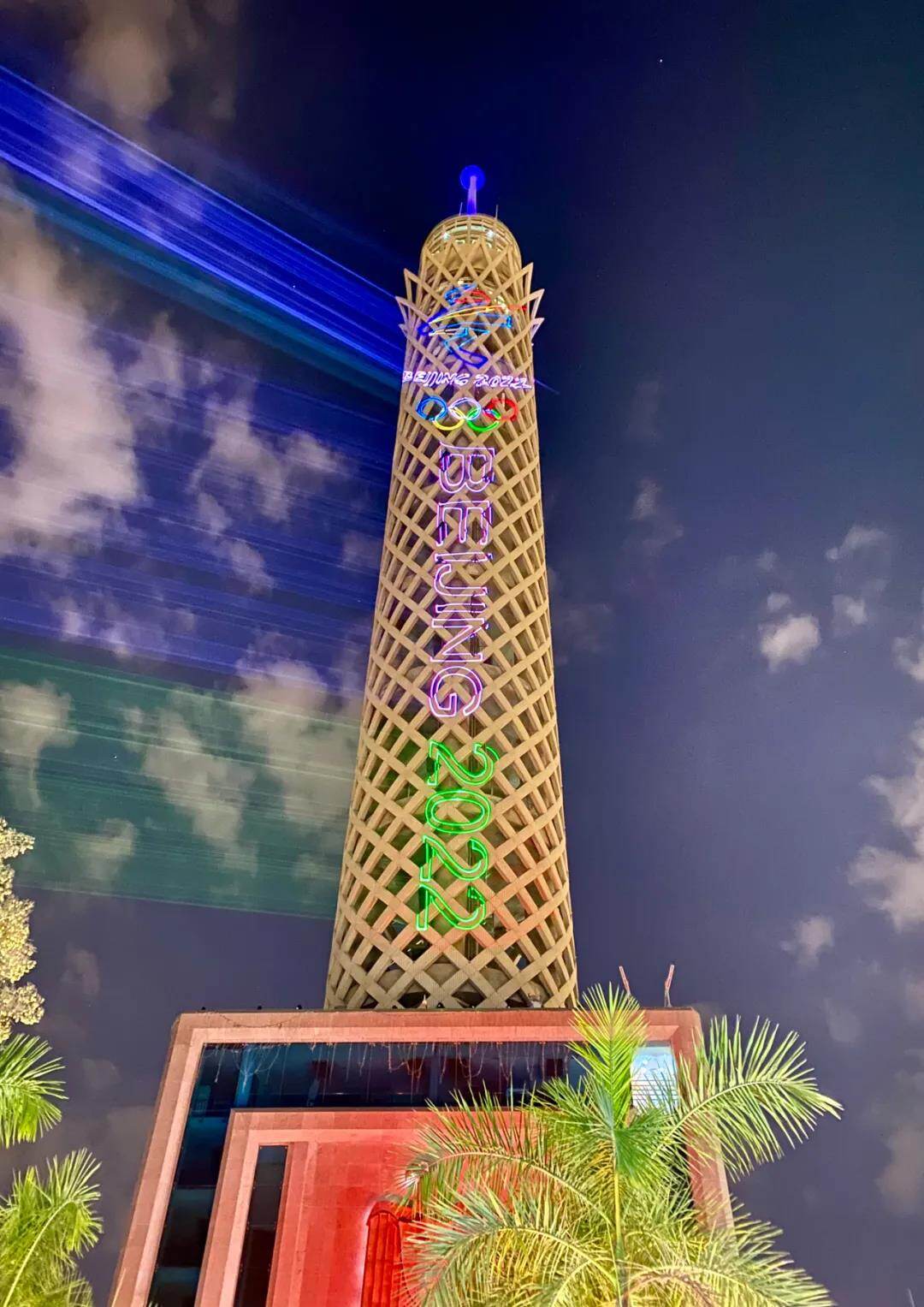 2022年1月24日晚,在北京冬奥会开幕倒计时10天之际,埃及首都开罗地标建筑开罗塔上演灯光秀,以中、英、阿三语将“北京冬奥会”“北京2022”“10天后北京见”等文字和北京冬奥会会徽投映在塔身,多彩绚丽的开罗塔与静静流淌的尼罗河组成了一道靓丽的风景线。中国驻埃及大使廖力强、埃及奥委会秘书长谢里夫·阿勒扬、开罗塔管理委员会公共关系主任哈尼·阿塔拉出席灯光秀启动仪式。(转载请注明见道网www.seetao.com)见道网工程栏目编辑/邢文涛