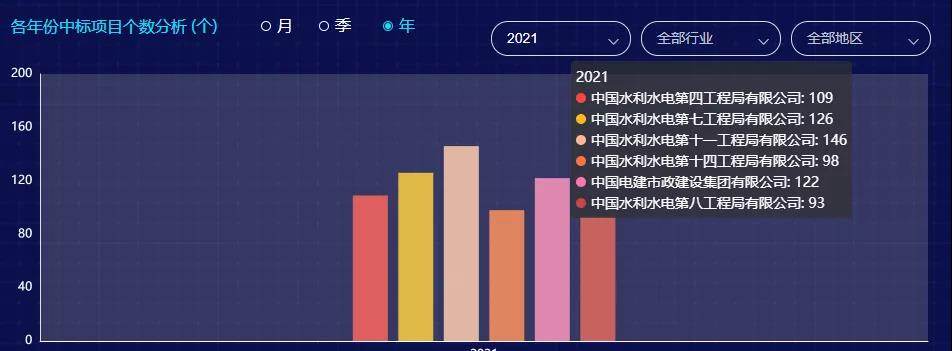 据数据对中国电建2021年5亿+重大工程的一个统计,从签约的大单数量来看,具体排名如下:
