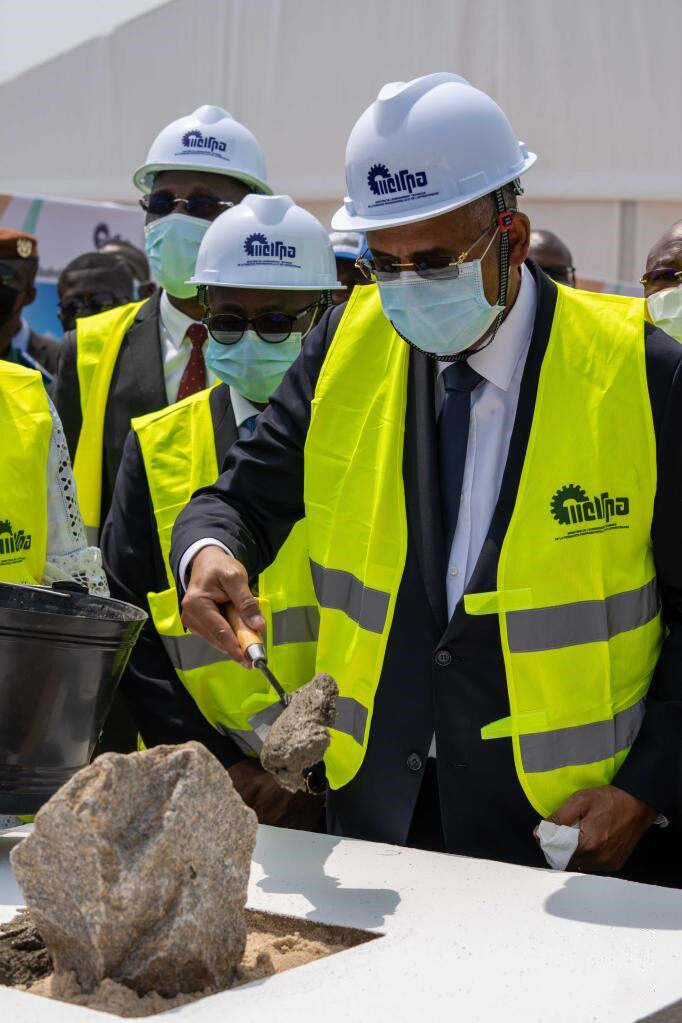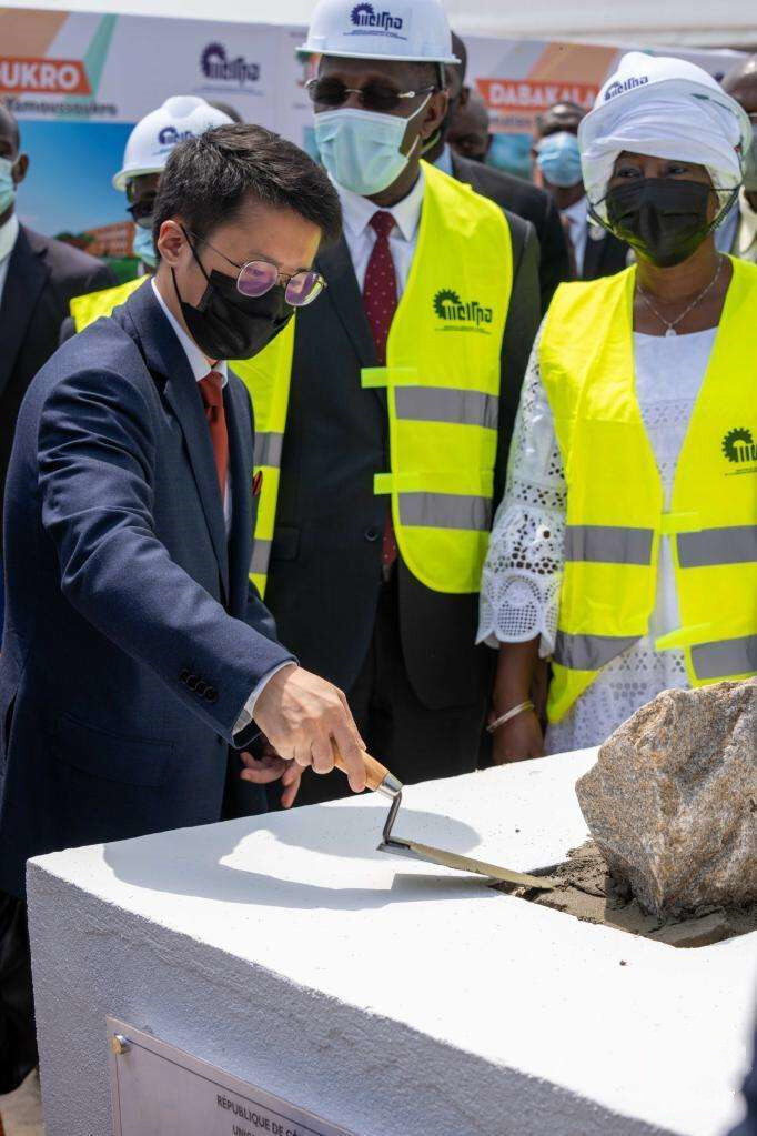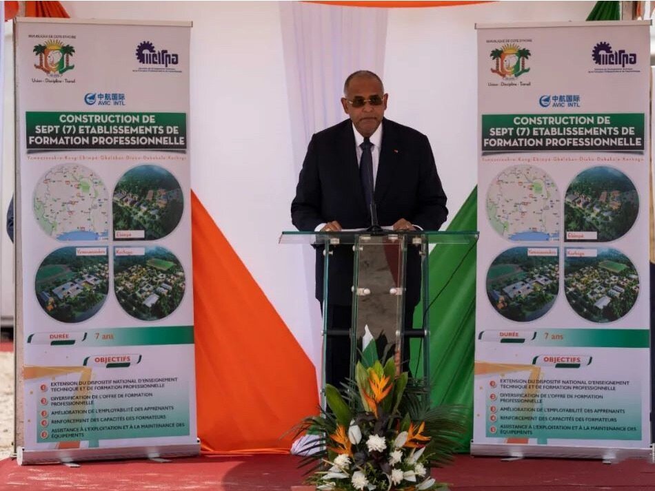 2022年1月24日,科特迪瓦总理帕特里克·阿希在经济首都阿比让市郊参加科特迪瓦职业培训学校项目开工仪式。
