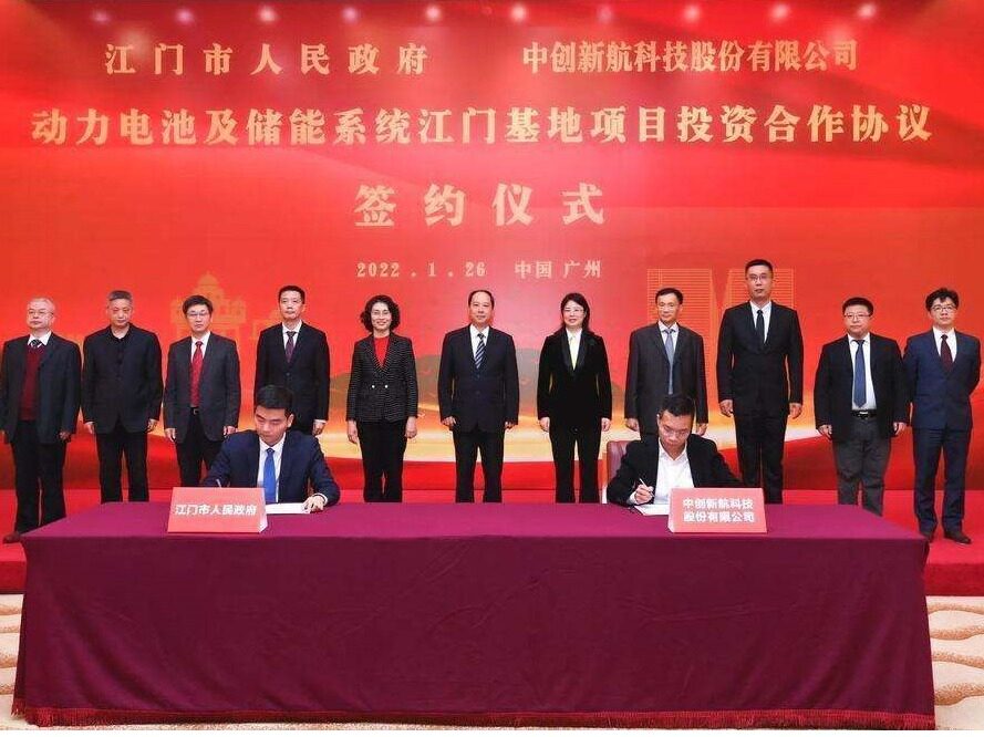 2022年1月26日晚间,中创新航官网发文称,该公司已与广东省广州市和江门市政府签署投资合作协议,将在两地分别规划建设产能为50GWh的电池工厂,主要产品为动力电池和储能系统,总投资为400亿元。