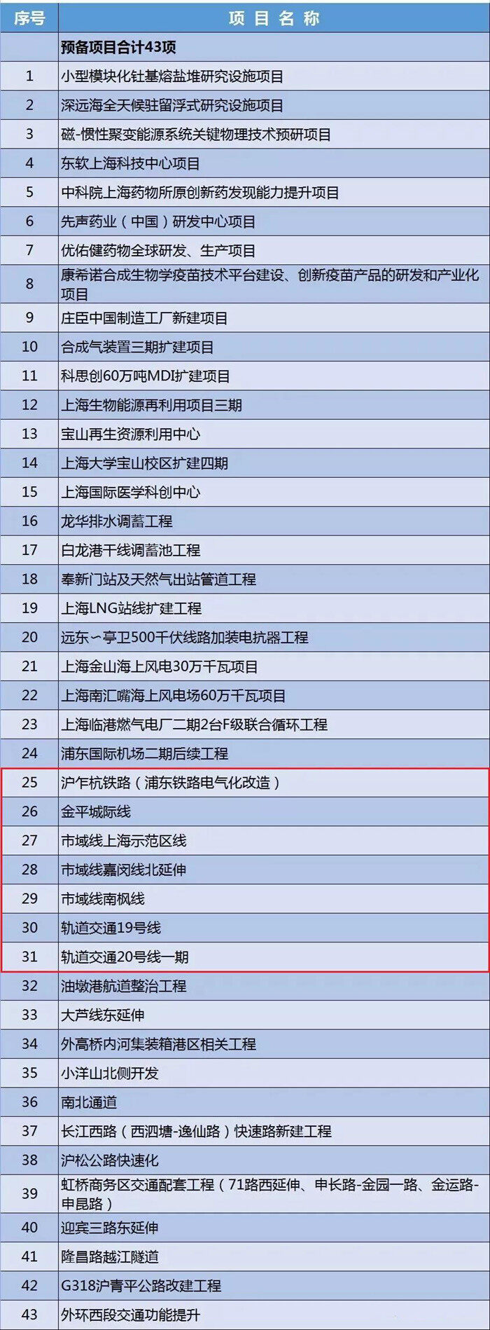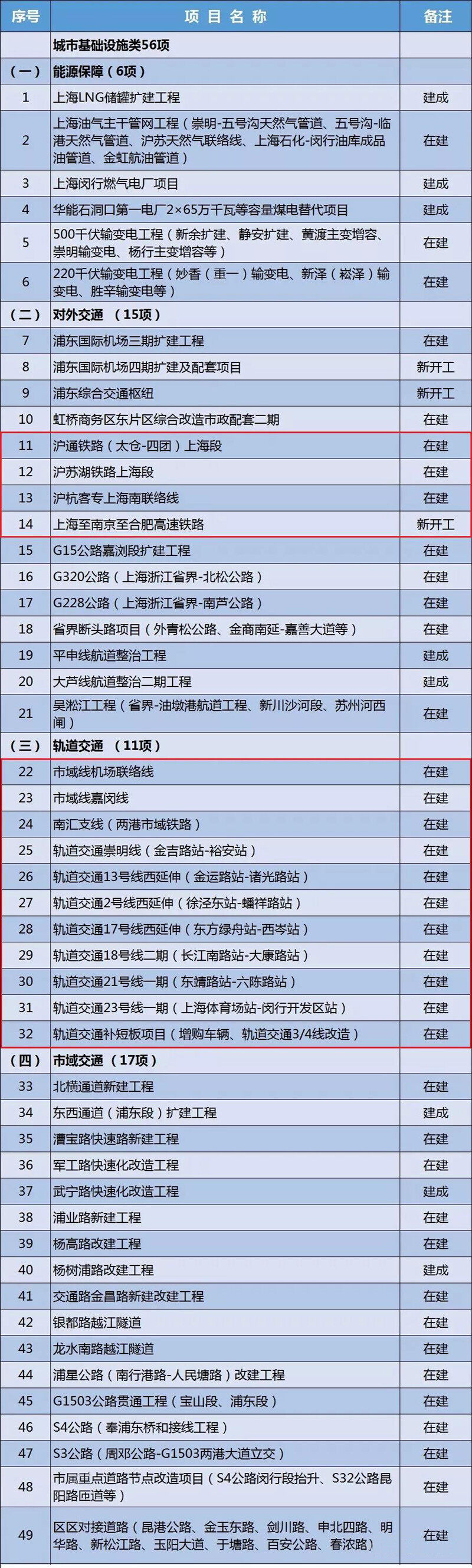 Projects under construction: Phase III expansion project of Pudong International Airport, Shanghai section of Shanghai-Tongzhou Railway (Taicang-Fourth Mission), Shanghai section of Shanghai-Suhu Railway, Shanghai-Hangzhou Passenger Express Shanghai-Southern Link, Shiyu Line Airport Link, Shiyu Line Jiamin Line, Nanhui branch line (two-port urban railway).