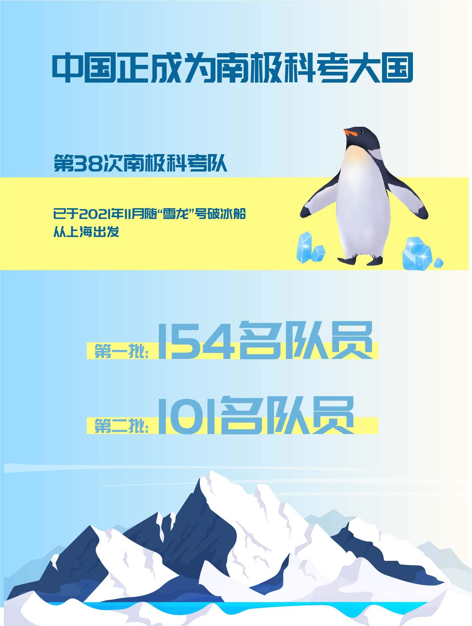 不久前,中国向南极派出第38次科学考察队。此次远征的科学意义几乎不亚于太空之旅。第38次南极科考队已于2021年11月随“雪龙”号破冰船从上海出发,第一批154名队员,第二批101人,预计将于2022年4月中旬返回国内。