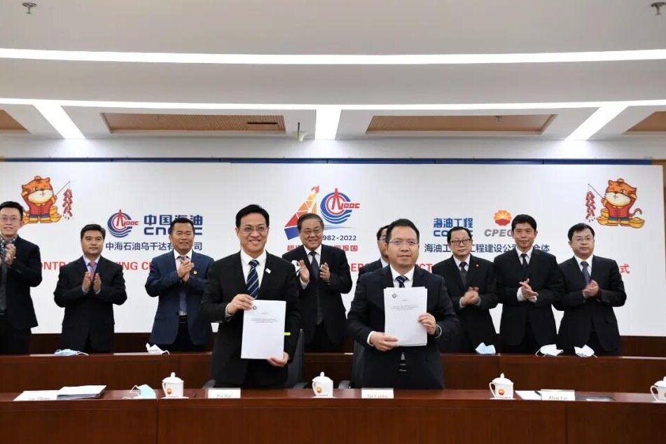 The operator of the project is Uganda Co., Ltd. (“CNOOC Uganda Co., Ltd.”), a subsidiary of China National Offshore Oil Corporation. CNOOC Uganda President Chen Zhuobiao and Vice President Hu Weijie and Ma Peixin, President Wang Zhangling and Vice President Yu Changsheng and Kong Linghai of Offshore Oil Engineering Co., Ltd. (“COOEC”), General Manager Wu Jun, Chief Accountant Liu Guihua and Vice President Manager Liu Kai, Liu Zhongmin and other leaders attended the signing ceremony.