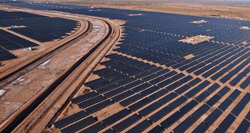 埃及南部的阿斯旺省,气候炎热,阳光充足,全年日照超3000小时。阿斯旺沙漠中,埃及首个“太阳能村”、全球最大的光伏产业园之一——本班光伏产业园正有序运转,为埃及绿色能源发展提供新动能。