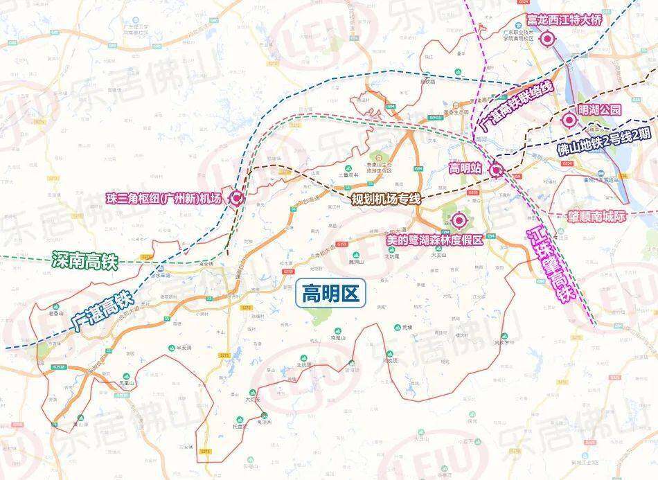 “十四五”期间,佛山将推进珠三角枢纽(广州新)机场建设,构建与广州白云国际机场快速联系通道,共建国际航空枢纽;加强珠三角枢纽(广州新)机场集疏运体系规划建设,特别是机场快线方案研究,实现佛山中心城区与珠三角枢纽(广州新)机场的快速联系;通过引入广湛、珠肇高铁等区域轨道线路和佛肇、广明高速等高快速路,逐步构建以航空功能为主的综合型交通枢纽。