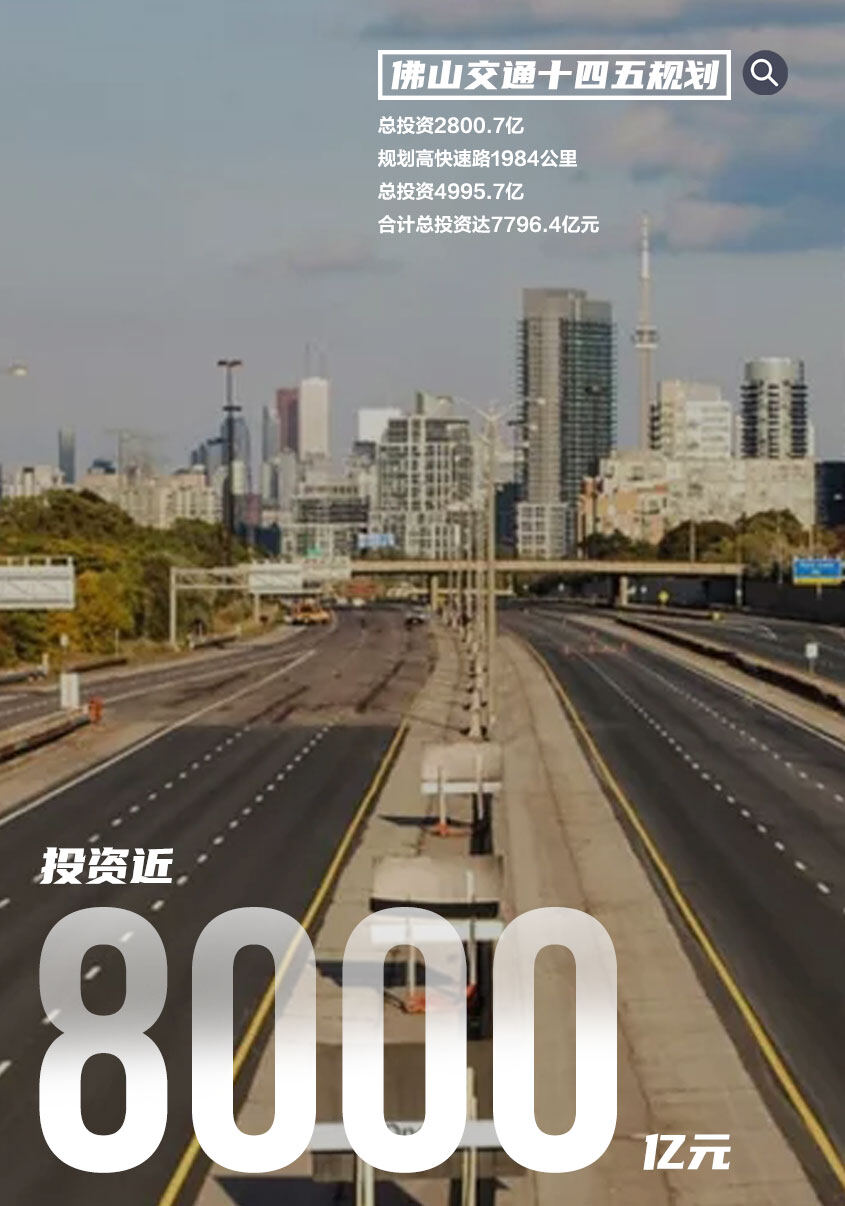 为加快实现交通强国建设目标,打通经济发展动脉。佛山大手笔!发布重磅规划!五年安排342项交通项目,总投资2800.7亿!规划高快速路1984公里,总投资4995.7亿!合计总投资达7796.4亿元!佛山交通发展“十四五”规划出炉!