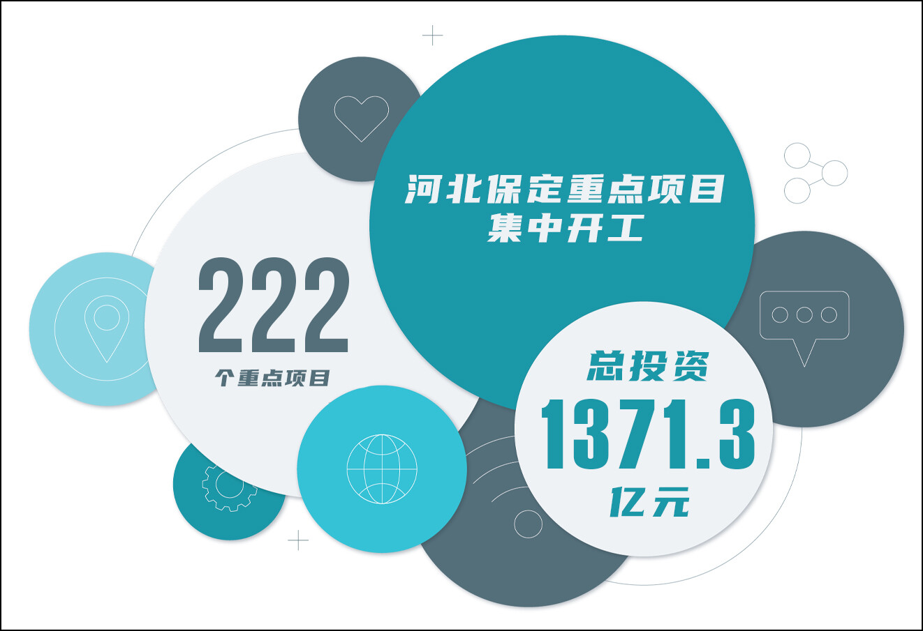 2022年2月21日,河北省保定市第一批222个重点项目集中开工,总投资1371.3亿元,涵盖战略性新兴产业、现代服务业、农业产业化、基础设施等领域。据悉,此次集中开工活动共设4个主会场,分别为竞秀区大唐九期、高新区玄云涡轮喷气发动机、莲池区杨村三期城中村改造安置区和环城水系系列项目建设现场。19个县(市、区)、开发区设置分会场。