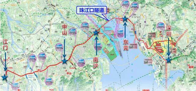 珠江口隧道,位于广东省东莞、广州之间的珠江入海口,是深江铁路全线控制性工程。 隧道全长13.69公里,设计时速250公里。2020年7月2日,珠江口隧道正式开工建设,计划工期为56个月。