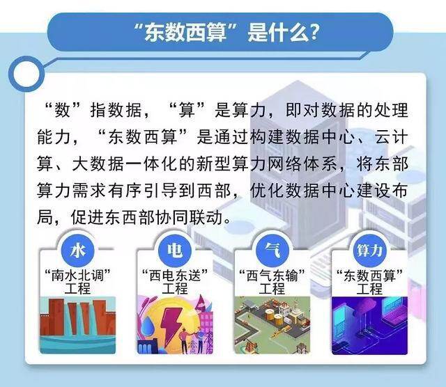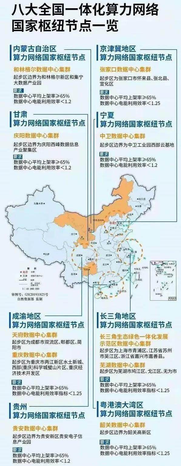 国家发改委在批复西部建设宁夏、内蒙古、贵州、甘肃四地之后,又批复粤港澳大湾区、成渝地区、长三角地区、京津冀地区四大都市圈建设全国一体化算力网络国家枢纽节点,全国布局8个算力枢纽的“东数西算”工程启动。“东数西算”被认为是继南水北调、西电东送、西气东输之后的又一重大基础设施工程,有望成为孕育了多年的新基建的新抓手。