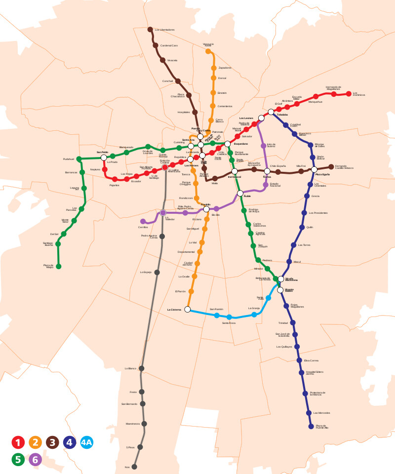 圣地亚哥地铁是智利首都圣地亚哥的城市铁路,穿越该市的大部分地区,由国有企业“地铁有限公司”管理。圣地亚哥地铁是智利第一条城市铁路,其他两条是瓦尔帕莱索的“瓦尔帕莱索地铁”和康塞普西翁的地面城郊铁路。圣地亚哥地铁被认为是拉丁美洲最现代化的地铁并位居世界前茅。共有5条线路、98个车站,全长84.4千米。