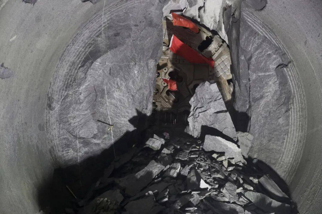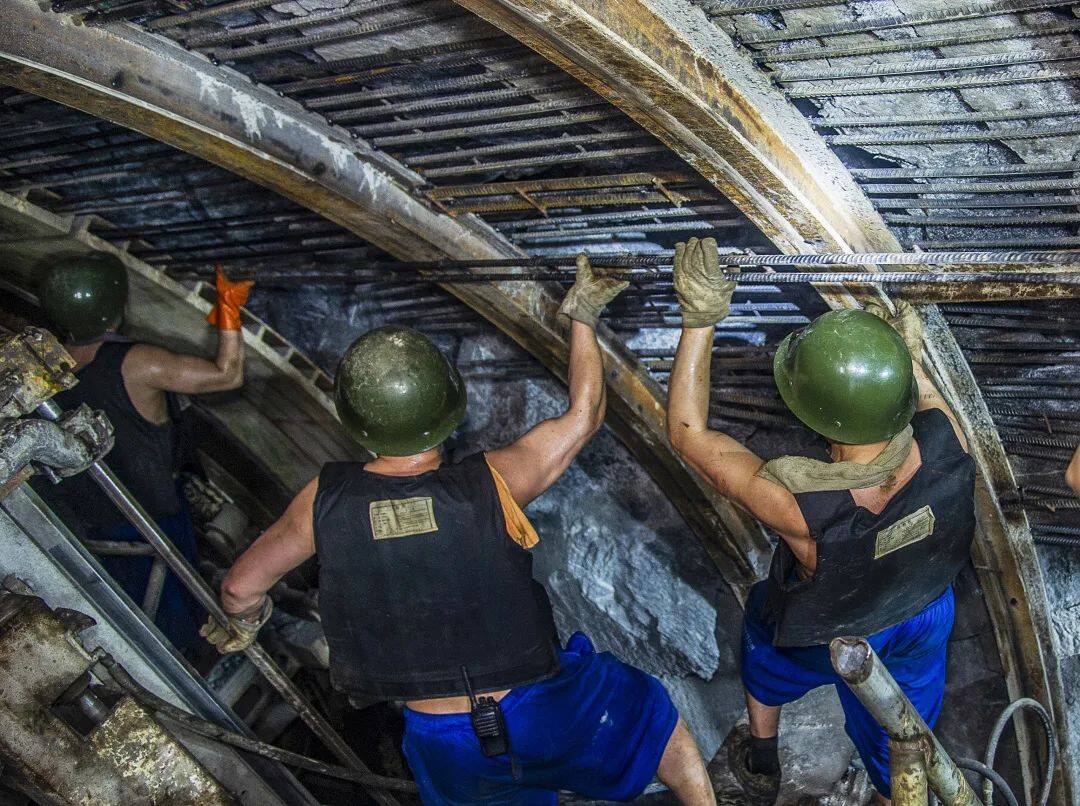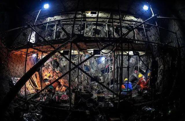 秦岭隧洞埋深1300~2012米,地应力超过60兆帕,岩爆段占施工总长度的70%。掘进过程中,岭南TBM掘进段共发生岩爆段落2056段,影响段落长度8586.8米,其中强岩爆4973.9米。岩爆崩落弹射石块威胁作业人员安全、砸坏机械设备和支护体系,作业人员不得不头戴钢盔、身穿防弹衣,冒着生命危险清理岩爆飞石。为了应对岩爆,建设者需要头戴钢盔、身穿防弹衣。