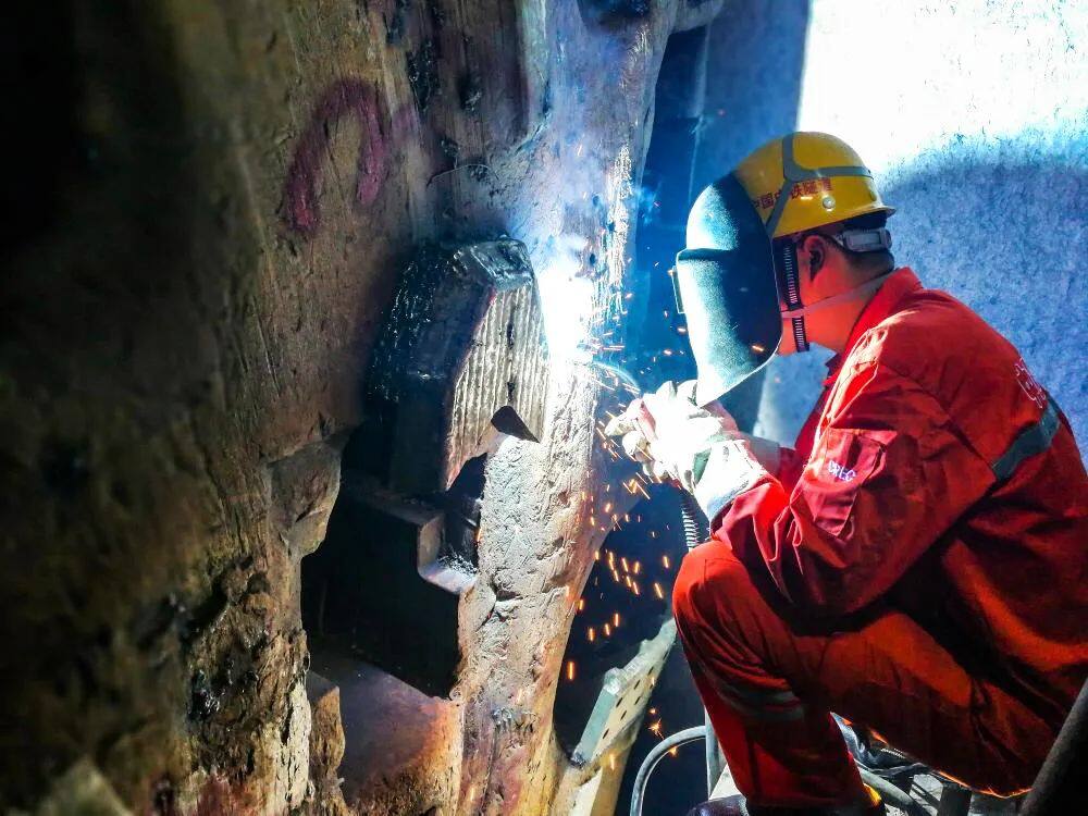 以石英岩、花岗岩、闪长岩为主的地层是TBM掘进的“天敌”,岩石平均抗压强度达194兆帕,最高达317兆帕,石英含量超过65%。岩石强度高、耐磨值大,刀具消耗量达到0.7把/米,掘进速度极低、刀具消耗量极大是影响TBM快速掘进的核心问题。