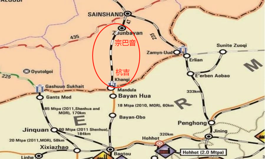 另外,新建的宗巴音—杭吉铁路还有条件运输从俄罗斯向中国包头运输的100-600万吨石油和100万吨木材,通过杭吉口岸出口的150万吨货物、经过乌兰巴托铁路网络向包头和呼和浩特运输的100万吨货物、包头到宗巴彦的100-200万吨建筑材料、金属结构、石油产品、机械设备、重型机械等物资。