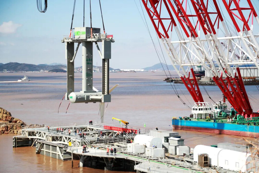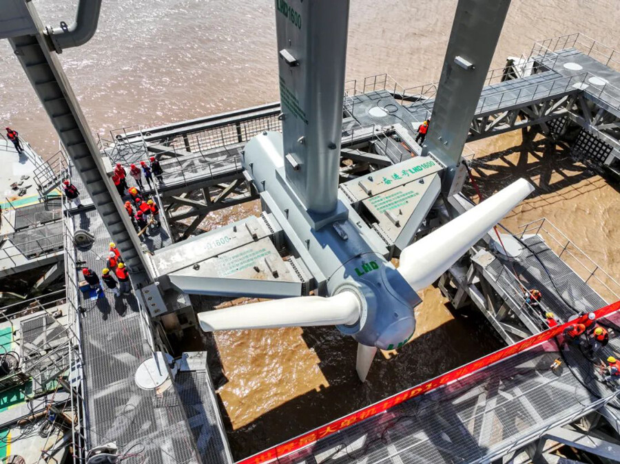 2022年2月24日,世界最大单机容量潮流能发电机组“奋进号”在浙江舟山秀山岛成功下海。经试运行一个月后将并入国家电网,届时该潮流能发电站装机容量将达3.3兆瓦,总装机容量和发电量均居世界前列。