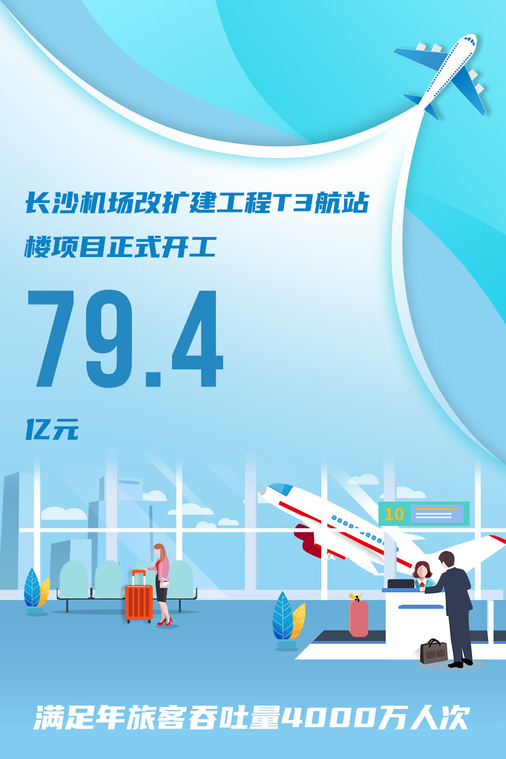 2022年2月28日,长沙机场改扩建工程T3航站楼项目正式开工,仪式在T3航站楼F大厅核心区施工现场举行。