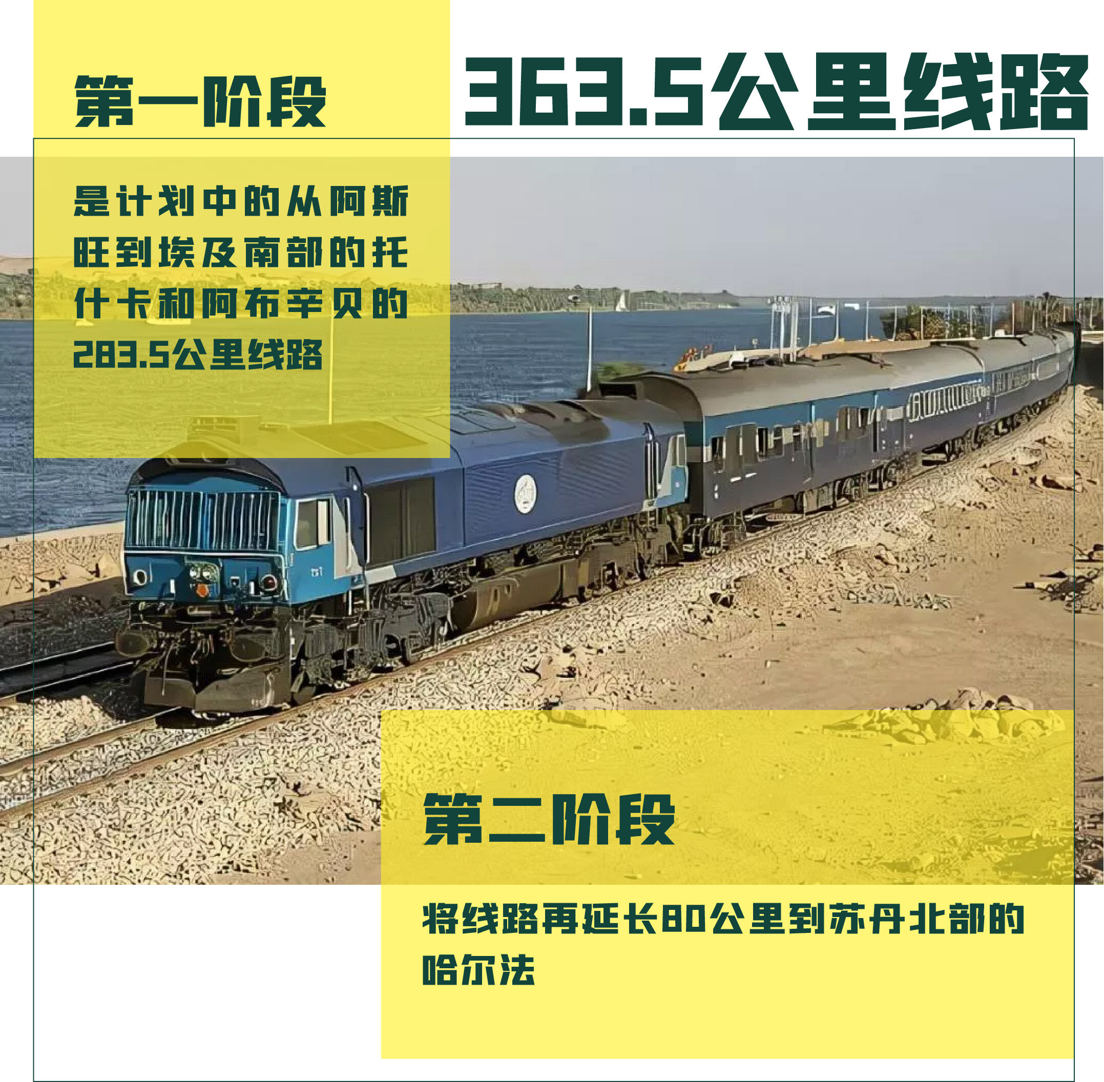 第一阶段是计划中的从阿斯旺到埃及南部的托什卡和阿布辛贝的283.5公里线路,第二阶段将线路再延长80公里到苏丹北部的哈尔法。