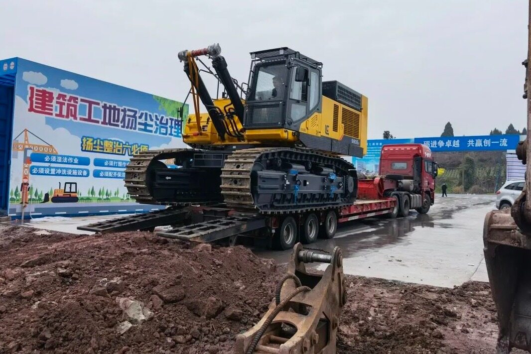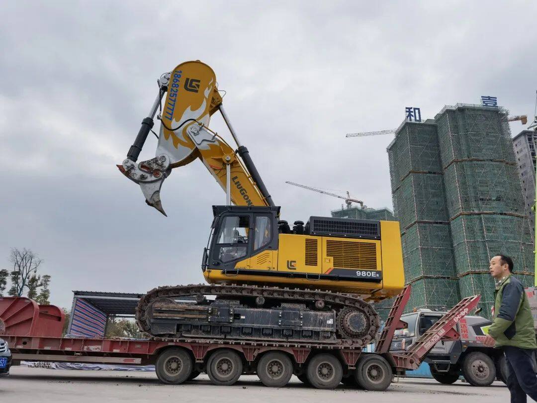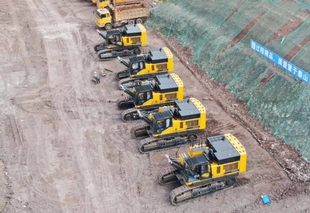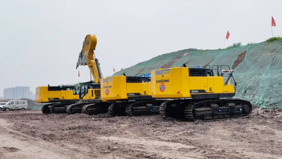 2022年2月28日,四川传来消息,随着四台柳工980ER挖掘机批量交付到工地,四川某建筑公司郭总一次性采购的10台柳工980ER岩石臂超大型挖掘机已全部交付完成!