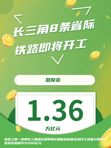 根据《长三角跨省市交通基础设施快联快通建设实施合作协议(2022—2025)》,未来4年,将共同推动实施20项省际铁路、16项省际高速公路、21项省际普通公路、9项省际航道项目,共计66项。长江三角洲地区多层次轨道交通规划总投资达到1.36万亿元。而2022年,涉及三省一市的长三角地区即将有8条省际铁路全线开工或者分段开工,总投资金额约3500亿元。