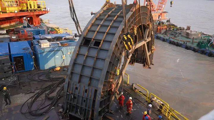 The underwater archaeological operation to salvage the ancient ship "Yangtze River Mouth No. 2" is expected to be completed by the end of 2022. Once the ancient ship is salvaged from the water, it is quickly lifted into a special salvage engineering boat and embedded in its open cabin.