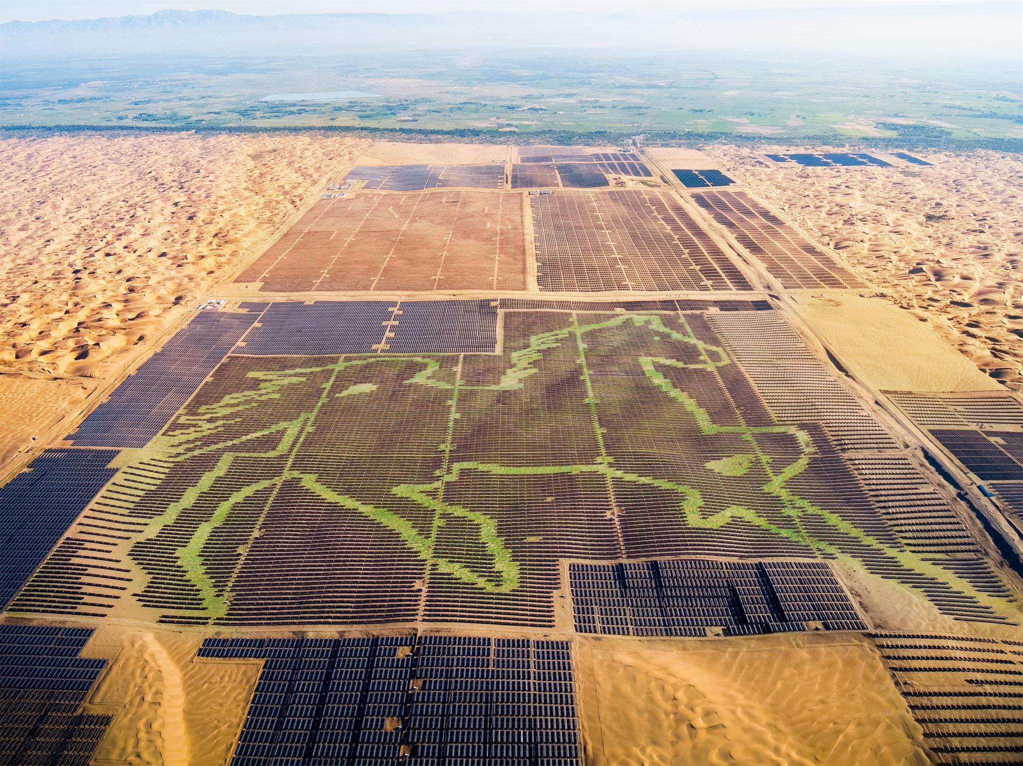 完成这些设计以后,要实现项目全面推进。目前,中国在沙漠戈壁荒滩要建设史上最大规模的4.5亿千瓦级的风电光电设备。