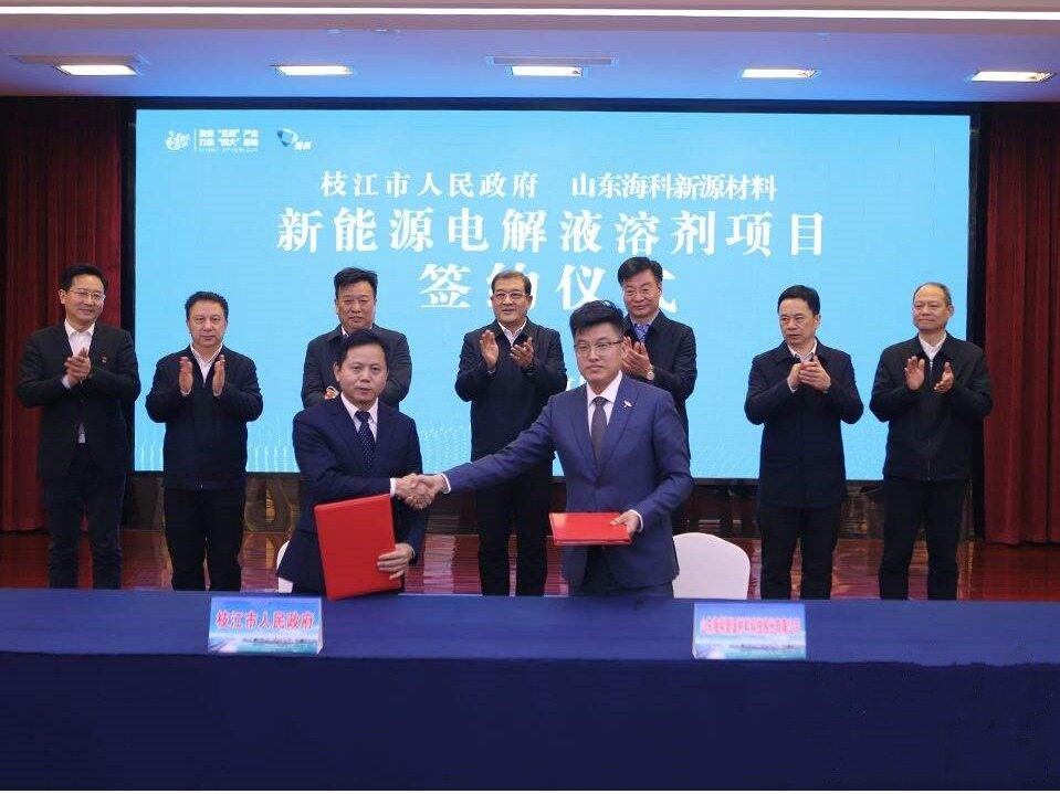 山东海科新源材料科技股份有限公司拟与湖北三宁化工股份有限公司合作,合作项目在枝江姚家港化工园占地1010亩,投资105亿元,新建新能源电解液溶剂项目,主要产品为电解液溶剂、添加剂等。其中,一期用地400亩,投资30亿元,计划于2022年3月动工建设,2022年12月底建成投产,可年产电解液溶剂25万吨、电解液添加剂1.27万吨。项目全部建成后,预计实现年产值120亿元、税收7亿元。