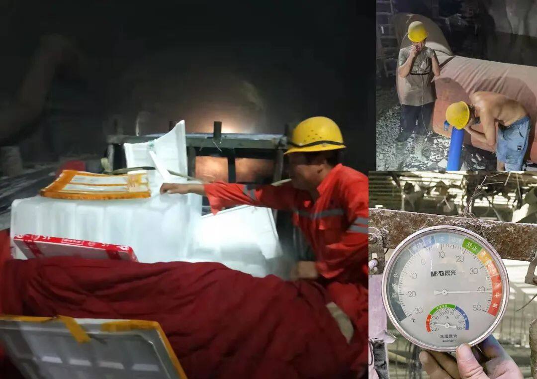 توجد حرارة جوفية عالية في النفق ، ودرجة حرارة البناء تزيد عن 40 درجة مئوية.يقوم قسم المشروع بشراء آلة ثلج لتبريد الجليد ويوفر أسطوانات أكسجين لامتصاص الأكسجين وإجراءات أخرى لمنع ارتفاع درجة الحرارة وضربات الحرارة وضمان التقدم السلس لبناء النفق