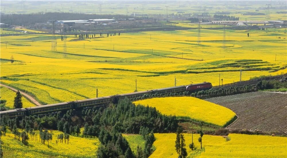 罗平油菜花的观赏黄金期是每年3月中旬至下旬坐着火车游罗平是个不错的选择。(转载请注明见道网www.seetao.com)见道网工程栏目编辑/马雪