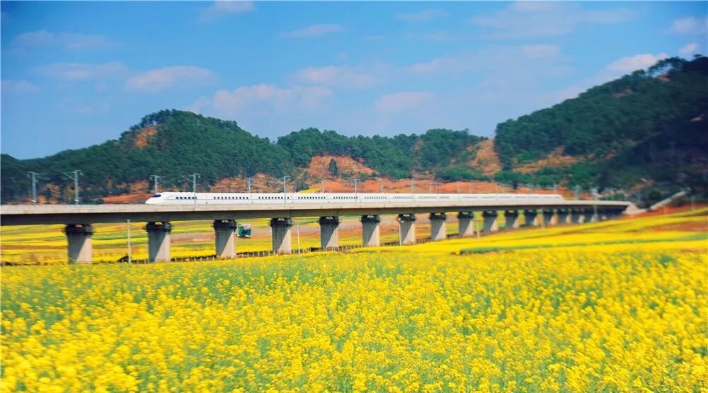 春日里的中国到底有多美,漫山遍野开满了杜鹃花、桃花、樱花、梨花,火车穿过金黄油菜花海,祖国大地春潮涌动,生机勃勃。