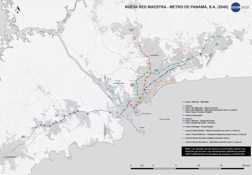 地铁的3号线是一条东西向延伸的25公里单轨系统。该线将于2022年完工,将在不到45分钟的时间内将通勤者从西巴拿马省通过巴拿马运河运送到巴拿马城。由于交通拥堵,旅程现在最多可能需要三个小时。