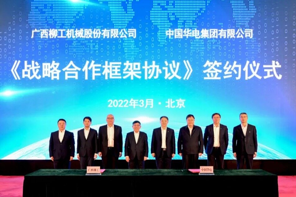 2022年3月11日,2022年全国两会胜利闭幕。广西柳工机械股份有限公司与中国华电集团有限公司在北京举行《战略合作框架协议》签约仪式。