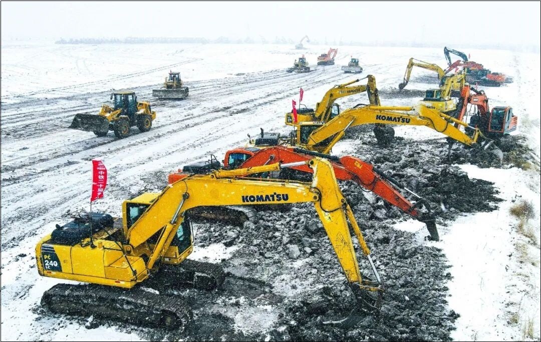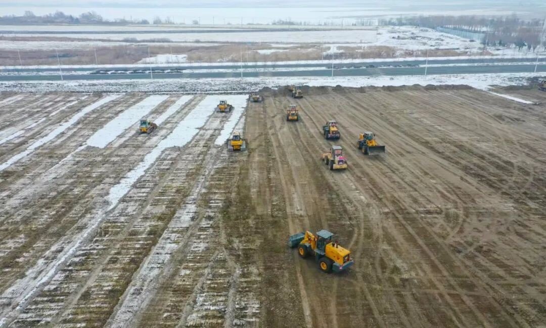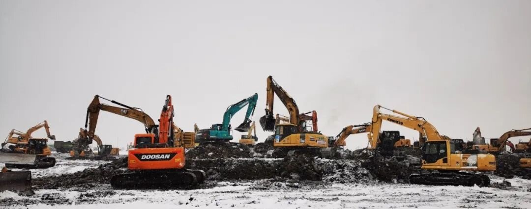施工期间,寒风飘雪,建设者冒着最低气温零下10摄氏度的严寒,经过20个小时的连续奋战,圆满完成了中国铁建承建的2号地块场地平整施工。