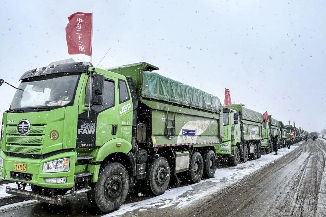 2022年3月14日,中铁二十二局集团接到紧急援建任务后,所属两个项目部迅速集结,首批派出管理及作业人员76人,翻斗车、推土机、吊车、挖掘机等设备共计62台。参建人员顶着风雪火速赶往现场。后续参建人员将分两班昼夜交替施工,确保按时完成全部施工任务。截至2022年3月15日16时,他们已将4000方级配碎石、50台翻斗车运抵现场,并平整场地3000平方米,倒运土方1.3万方。