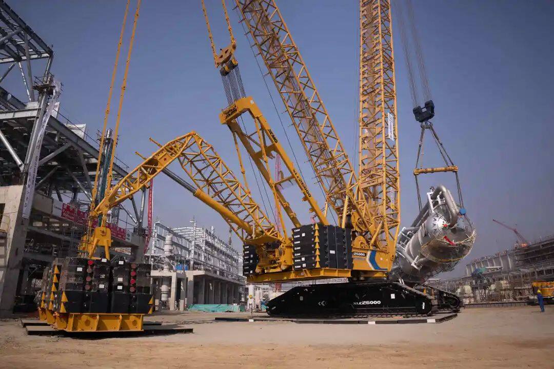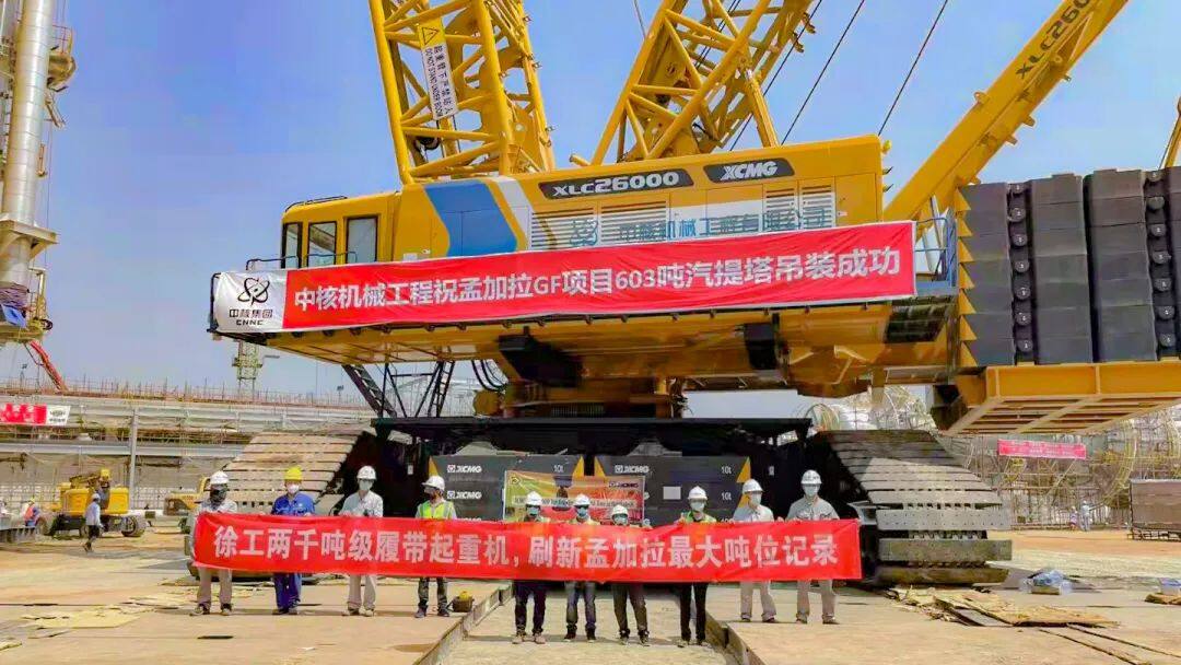 近日,在孟加拉国纳辛迪的该国最大绿色肥料厂建设中,徐工2000吨级履带式起重机圆满完成首台重型设备——603吨二氧化碳汽提塔吊装,这台起重机也创下中国出口孟加拉国最大吨位履带起重机纪录。