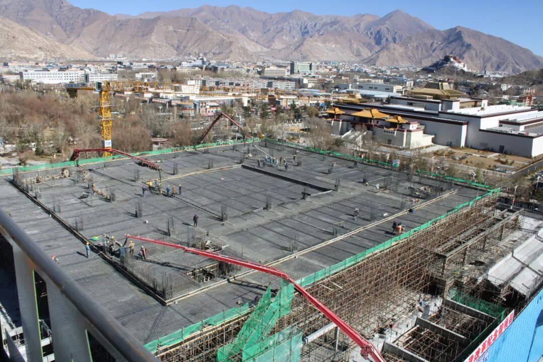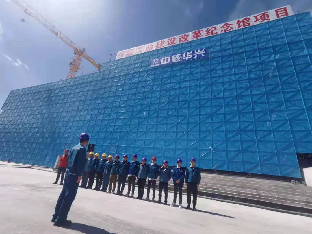 中核华兴承建的西藏革命建设改革纪念馆项目地处海拔3646.5米的青藏高原腹地,是庆祝西藏和平解放70周年重点项目,也是中核集团在西藏的首个建筑工程项目。2021年3月,纪念馆项目正式开工建设,华兴的建设者们带着热血与冲劲,踏上了征服高原的“信仰之路”。