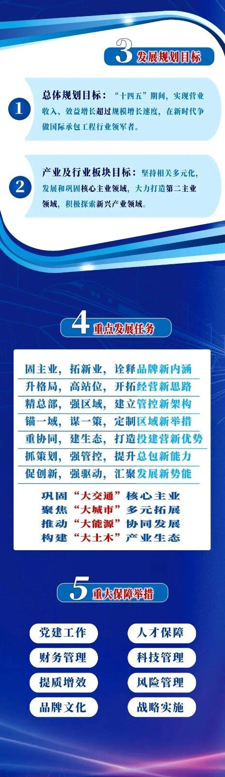 • 中国土木坚持稳中求进工作总基调,以推动高质量发展为主题,实现规模与效益、结构与布局的合理匹配,发展与安全、合规与效率的有效统筹,在新时代争做国际承包工程行业领军者