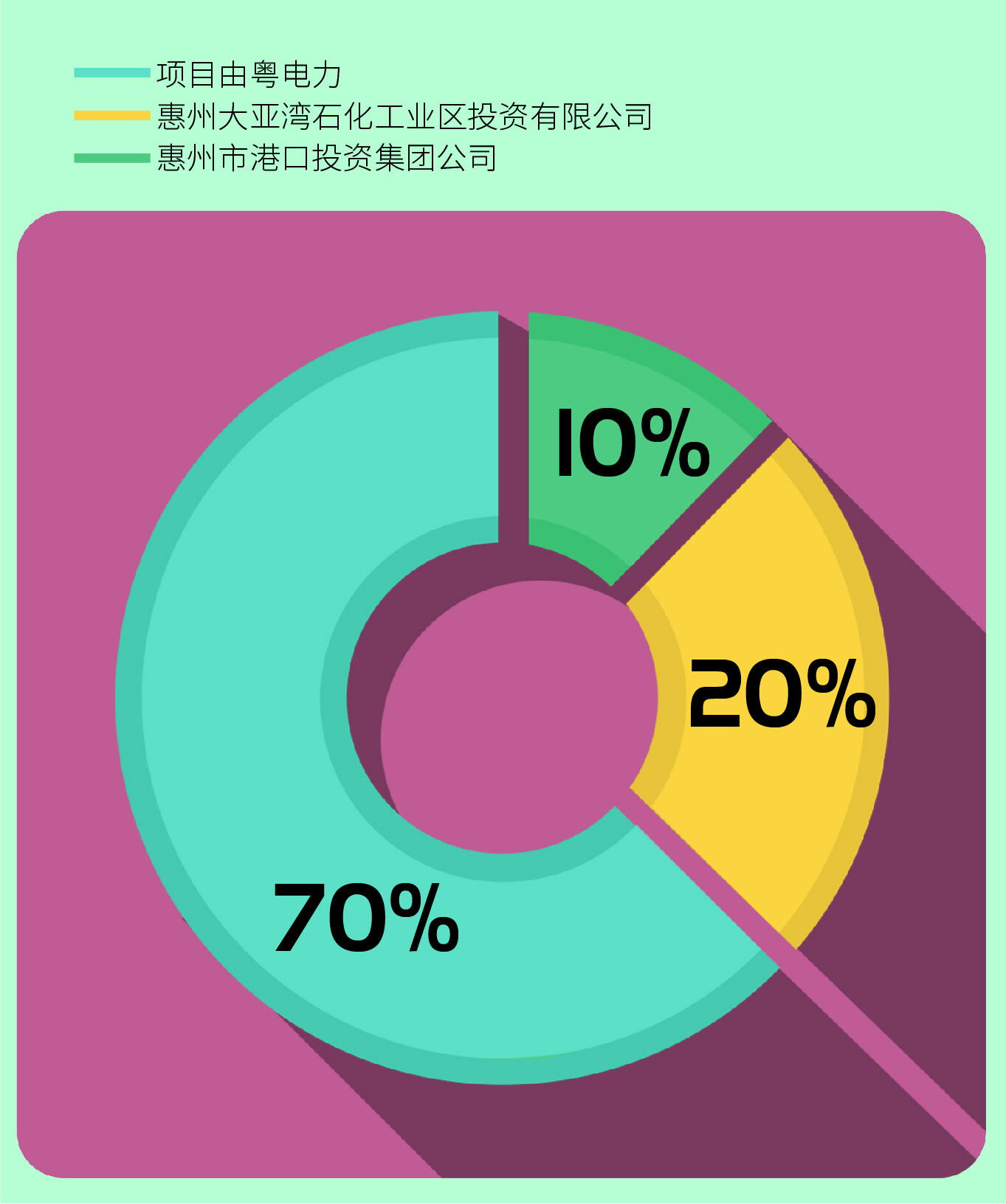 大亚湾项目是粤电力在大湾区谋划布局的大型清洁高效燃机项目,位于惠州市大亚湾经济技术开发区石化工业园,具有优越的区位优势和独特的产业优势。项目由粤电力、惠州大亚湾石化工业区投资有限公司、惠州市港口投资集团公司按70%、20%、10%比例共同投资,项目按两期规划,总投资约70亿元。